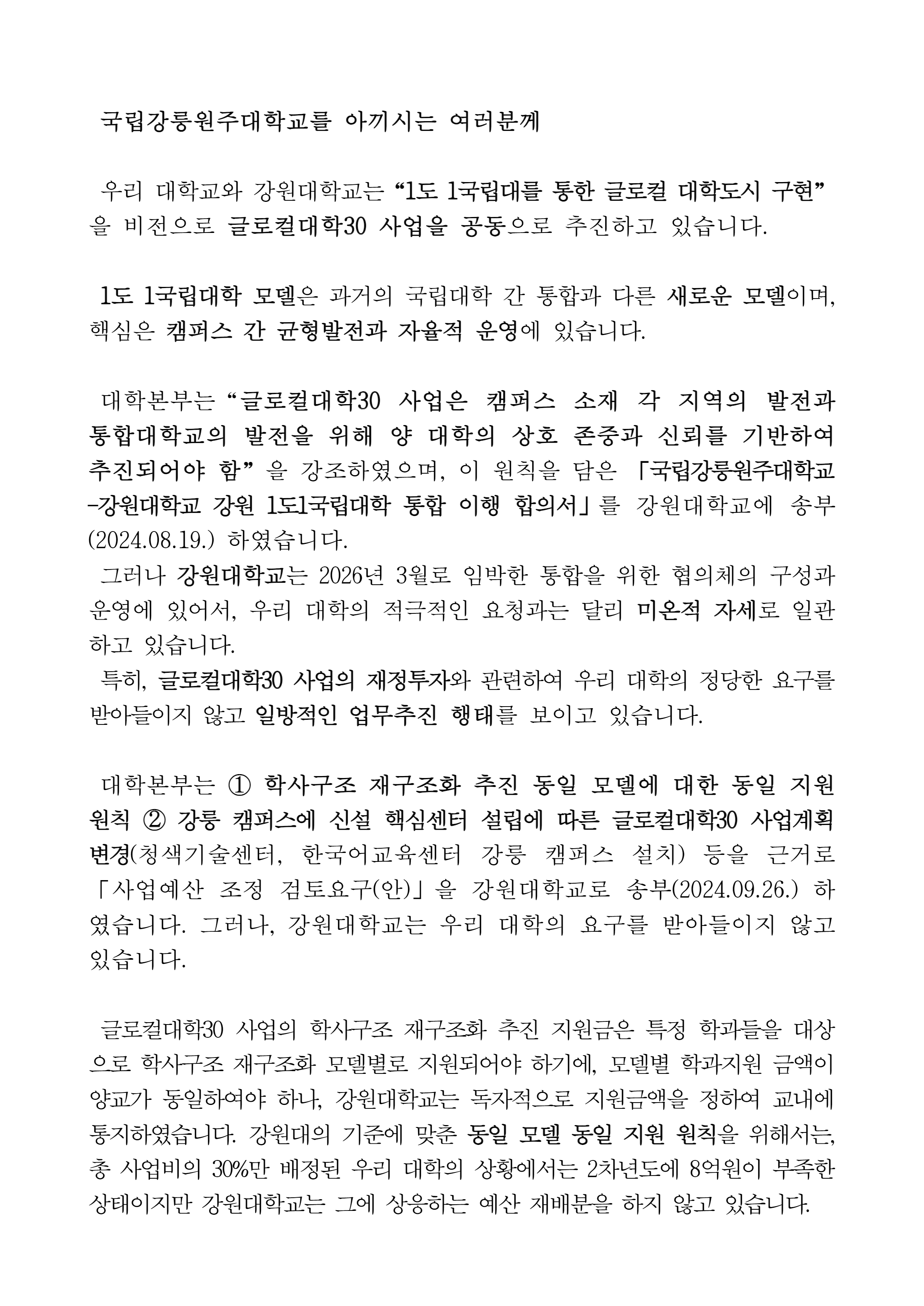 글로컬대학30 사업 추진과 관련하여 올림